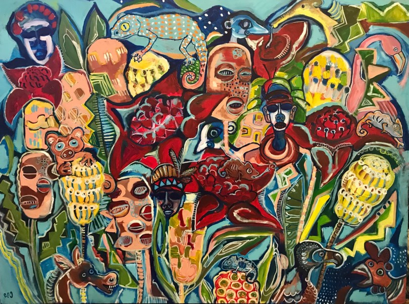Painting by Genevieve Camille Jackson – Cadeau de la Terre-Mere (A gift from Mother Earth), 2017 Acrylic on canvas 100×80